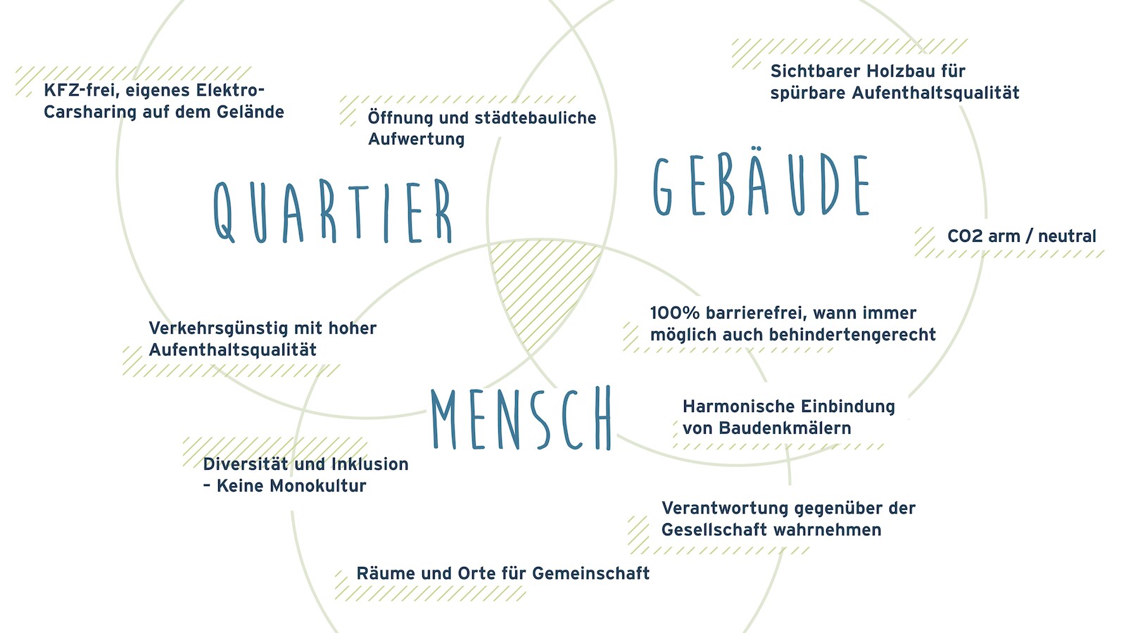 Die Zielsetzung der Freiburger Baugenossenschaft bogenständig rund um den Vorstand Willi Sutter ist die Schaffung von bezahlbaren Lebensräumen für Menschen, die aus verschiedenen Gründen auf dem freien Markt weitestgehend chancenlos sind – zum Beispiel durch chronische Erkrankungen oder Behinderungen. Für diese Menschen werden scheinbar nutzlos gewordene Gebäude nachhaltig wiederbelebt und mit einem Nutzungskonzept verknüpft.