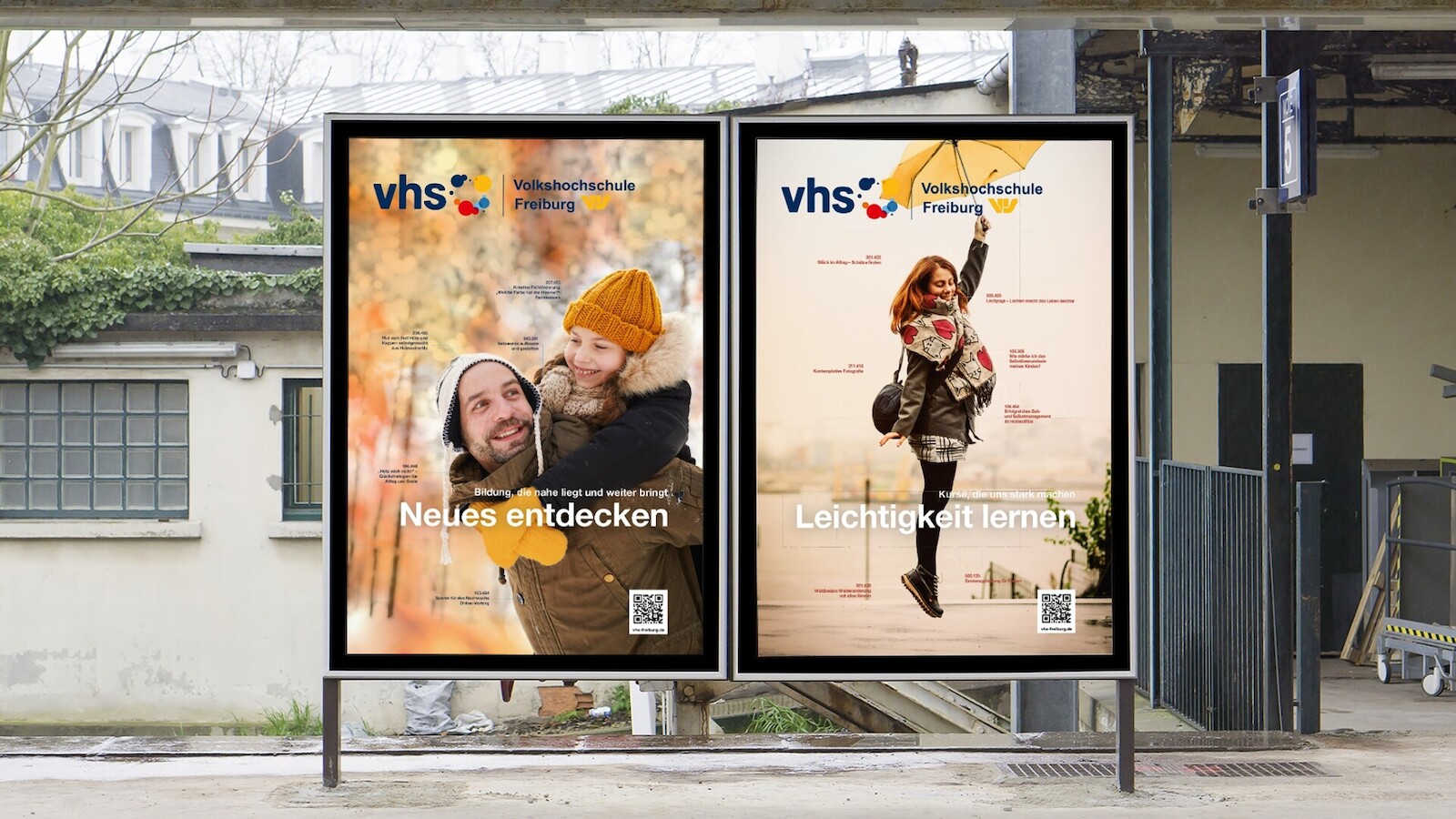 Emotionale Kampagnenmotive mit vollflächigen Bildmotiven sprechen sowohl die ältere Generation (neu) an und machen gleichzeitig auch Jüngere auf die Vielfalt des Angebots aufmerksam. Die reduzierte und fokussierte Typografie verweist dabei mit einem Augenzwinkern auf die Kursangebote.