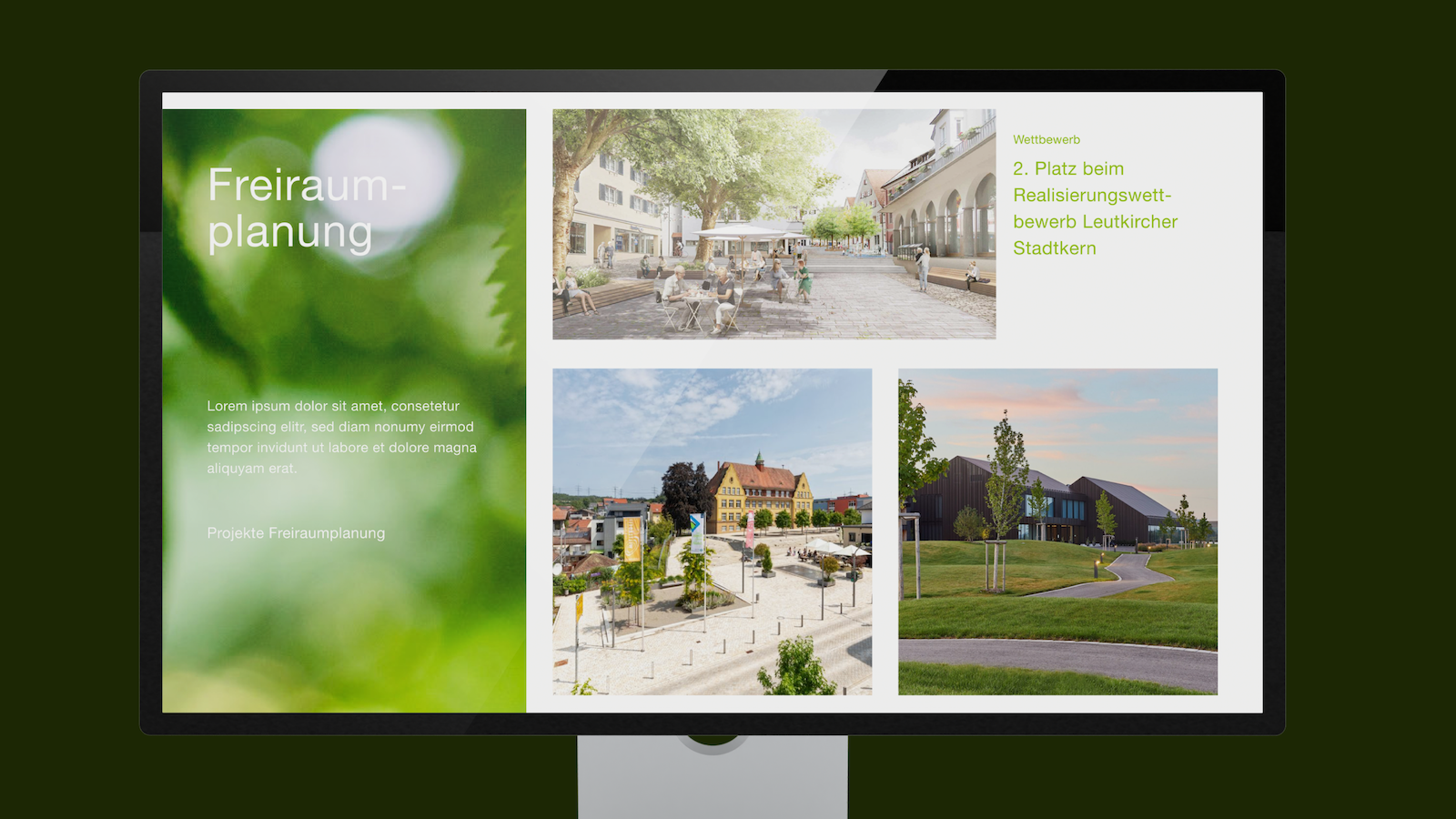 Typografie und Layout folgen einer funktionalen Logik, die Orientierung schafft und zugleich die Gestaltungsqualität der Projekte unterstreicht. In Publikationen, Wettbewerbspräsentationen und digitalen Medien entsteht so ein konsistenter Auftritt, der sowohl fachlich überzeugt als auch visuell Identität stiftet. Besonders prägend ist der Einsatz von großzügigen Bildflächen und einer zurückhaltenden grafischen Sprache, die die Projekte selbst in den Vordergrund rücken lässt. So transportiert das Design dieselbe Haltung wie die entworfenen Landschaften: klare Strukturen, nachhaltige Details und Raum für Entwicklung.